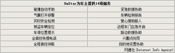 通用安吉星系统包括碰撞自动求助、路边救援协助、全音控免提电话、实时按需检测和全程音控领航等十四多项服务,其中安吉星系统的贴心服务体现了科技与人性的完美结合,丰富了驾驶者的无限驾车生活,同时也给予了消费者更多的便捷以及更多的安全保障。综合起来看,可以归纳为亮点,车辆和乘员的安全、导航功能的扩展。