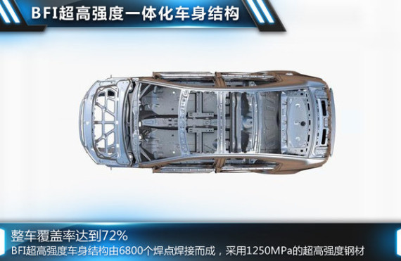 通用旗下三大品牌国产车型均采用了BFI超高强度一体化车身结构,其整车车体由激光焊接一体化车顶、6800个焊点的高密度焊接车身工艺制作而成,超出普通车型近40%。同时其大量使用高强度和1250MPa的超高强度钢材,覆盖率达到72%,与同级别车型相比有很大的优势,拥有了最坚固的车身,甚至超过了豪华品牌车型。