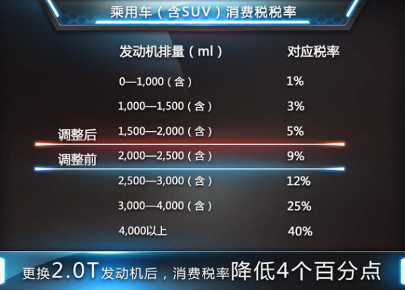 新一代路虎卫士在推出之后势必会有引入国内的计划。全新的2.0T动力系统不仅使路虎卫士在提升动力的同时降低了油耗和排放,而且在消费税率上有所降低。现款的路虎卫士搭载的是2.4L的增压引擎,按国家最新的消费税征收法规需缴纳9%的消费税。而新车在采用2.0T更小排量引擎后,消费税将降低到5%,下降了4个百分点。根据目前路虎卫士在国内的售价预测,未来全新路虎卫士进入国内后售价有望降低数万元。(网通社 2014年11月3日 北京报道)