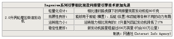据捷豹路虎方面介绍,Ingenium系列2.0升涡轮增压柴油发动机相比现款2.2升直列四缸发动机运转阻力降低了17%,而这要归功于其搭载的一些列先进技术,包括电控油泵和水泵,凸轮轴和平衡轴采用滚针轴承,活塞冷却喷嘴也采用电控。在轻量化方,新发动机相比捷豹路虎旗下的同排量现款发动机轻80千克,并且动力更强劲、油耗更低、排放更清洁。此外,Ingenium全系列发动机拥有相同的缸径、冲程和缸距,每缸排量500cc,未来捷豹路虎可基于Ingenium系列发动机开发出排量更小或更大的发动机。(网通社 2014年11月4日 北京报道)