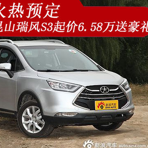 新浪昆山汽车讯 近日编辑从昆山海昌天盛汽车4S店获悉:昆山瑞风S3接受预定,最低首付两成,购车送大礼包(5年20万公里质保,首保3000公里免费),感兴趣的朋友可以到经销商处详谈。24小时咨询热线:18625058329 团购QQ群:98733876 具体明细请见下表:<网上4S店><我要团购>