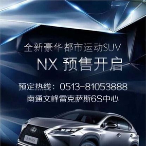 :【新浪汽车南通讯】11月17日,文峰雷克萨斯都市运动型SUV——NX300h现车到店!喜欢NX的朋友,可以预订啦!预订热线:0513-8105 3888。订金只需五千元哦!