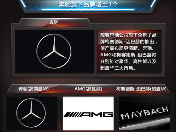 随着全新子品牌梅赛德斯-迈巴赫的推出,奔驰公司旗下的品牌布局也更为清晰。其中奔驰将面向全球高端豪华车市场,而AMG则是针对在享受豪华待遇的同时又追求高性能表现的用户,另外梅赛德斯-迈巴赫作为面向超豪华市场的少数派用户的产品将提供最为奢华的用料以及制造工艺,助力奔驰开拓超豪华车市场。