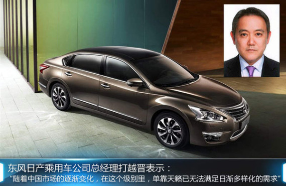 英菲尼迪首款国产车型-Q50L日前已在东风日产襄阳工厂成功下线,襄阳工厂整体造车水准也因此迈上一个台阶。目前,东风日产品牌旗下高端车型天籁 (配置|询价)及SUV楼兰均诞生于该工厂,既然有了生产“硬实力”作基础,其在新车方面也有着更为长远的规划。近日,东风日产总经理打越晋在接受网通社采访时表示:“随着中国市场的逐渐变化,在这个级别里面,单靠天籁车型已经无法满足日渐多样化的需求,明年之后,我们会考虑投放天籁级别的车型”。