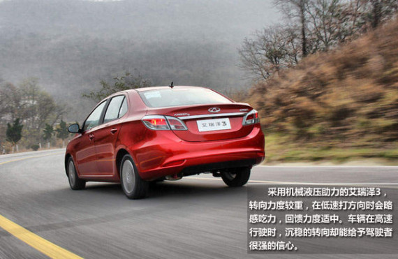 实际驾驶过程中,艾瑞泽3发动机的动力输出十分线性,深踩油门踏板令发动机转速达到3000左右,能够感受到明显的动力输出,140Nm的扭矩能够轻松带到整备质量达到1206kg的车身,虽然谈不上轻而易举,但也算游刃有余。此次试驾在山路居多,在爬坡过程中挂入2挡行驶时,也不会有吃力的感觉。