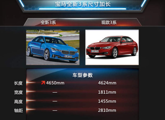 得益于轻量化技术使车重更轻,但为了迎合市场对于大空间的需求,换代3系的车身尺寸还将继续增大。预计长度将达到4650mm,相比现款标准轴距3系的4624mm更大,使得标准轴距车型的车内空间继续得到改善。除此之外,现款3系专为中国打造的长轴距版车型,换代3系仍然将延续,未来全新产品的推出,将进一步提升其在豪华B级车领域的竞争力。