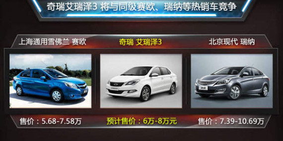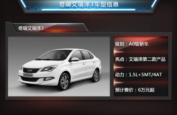 在售价方面,艾瑞泽3也将制定出一个极具竞争力的售价。对此,有奇瑞内部人士透露,这款新车的起售价将在6万元左右。对于艾瑞泽3这款车型市场前景如何,我们还要保持观望。 (网通社 2014年11月27日 北京报道)