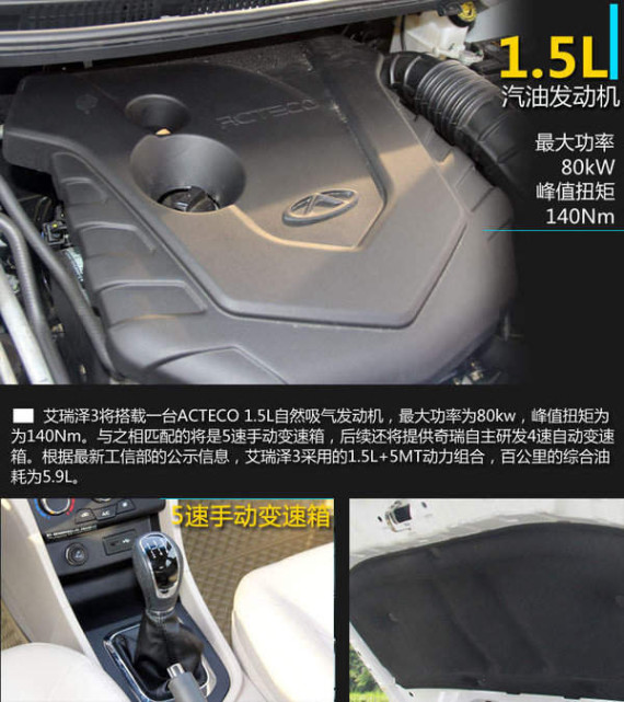在动力方面,艾瑞泽3将搭载一台ACTECO 1.5L自然吸气发动机,最大功率为80kW,峰值扭矩为为140N·m。与之相匹配的将是5速手动变速箱,后续还将提供奇瑞自主研发的4AT变速箱。根据最新工信部的公示信息,艾瑞泽3的百公里综合油耗为5.9L。不难看出,该车在燃油经济性方面有着不错的表现。