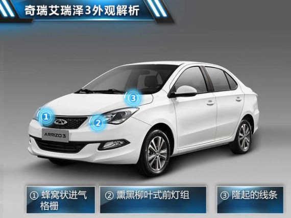 在外观设计上,艾瑞泽3采用与艾瑞泽7相同的最新家族化设计,蜂窝状的进气格栅设计,配合柳叶式的前灯组,令车辆极具视觉冲击力。此外,前进气格栅与下进气口的设计极具层次感,整体搭配十分得体。高腰线的设计,笔直的腰线连接前后大灯,使车辆看上去更加修长。搭配双五幅15英寸铝合金轮毂,彰显出十足的运动感。