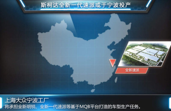于今年10月建成投产的上海大众宁波分公司在今年5月启动了基地扩建项目。项目位于宁波分公司厂区内北侧,产品覆盖A级、B级等中高级乘用车,预计2016年建成投产。宁波基地扩建项目将继续引入MQB模块化平台技术,实现不同级别车型在同一平台上的生产制造。随着全新一代速派将与2015年3月在日内瓦车展亮相,国产换代速派有望于明年第三季度同步国产,而插电混动车型预计将随后发布。