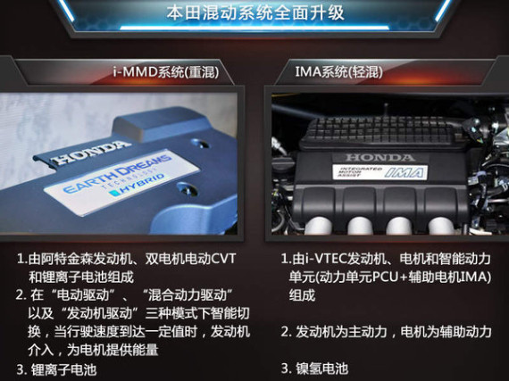 关于i-MMD系统与IMA系统的区别,首先就在于其结构组成部分,目前本田飞度混动版、CR-Z以及INSIGHT所采用的IMA系统由排量相对较小的1.3L、1.5L i-VTEC发动机和电机以及智能动力单元组成,结构相对于i-MMD系统要简单一些。