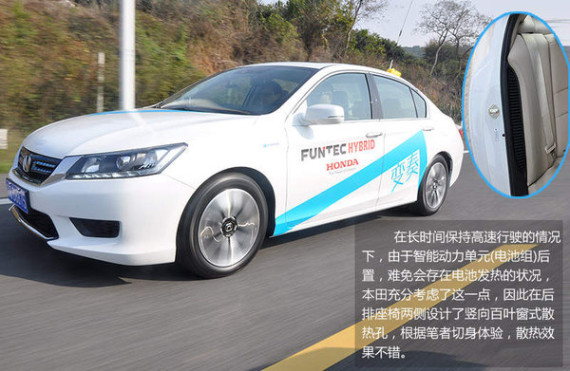 在保持一段匀速行驶之后,开始尝试加大力度踩下油门踏板,当时给我的第一感觉是,本田并没有针对雅阁混动版只追求燃油经济性而忽略了整车的加速性能。与此同时,为避免由于车辆长时间行驶导致的电池发热等普遍存在的问题,雅阁混动版的后排座椅两侧均涉及了竖向的散热孔。