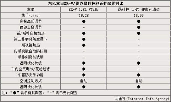 在舒适性以及多媒体配置方面,XR-V 1.8L VTi版与昂科拉1.4T都市运动型并没有明显区别,前者在舒适型配置上稍占优,不过对比这两款家用车型而言,如果不是特别追求高配置,两者所具备的的这些配置也足以满足日常用车需求。