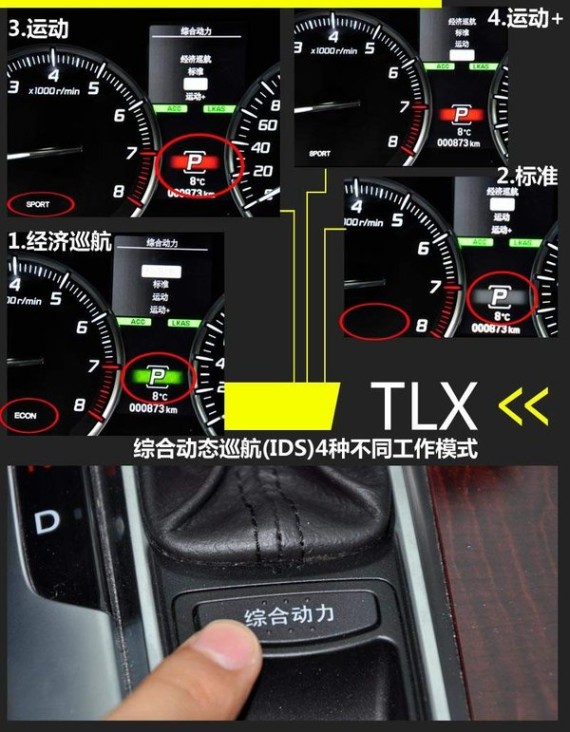 TLX共分为经济巡航、标准、运动和运动+4种不同行驶模式,在经济巡航模式下,得益于2.4L i-VTEC缸内直喷发动机所带来的动力足以满足日常需求及8速双离合的应用,在高速行驶过程中也能保持良好的稳定性,该变速箱握感舒适,在换挡过程中衔接也比较到位,尤其是在运动以及运动+模式下,随心所欲的加减档速度,充分体现出该车出色的操控性。