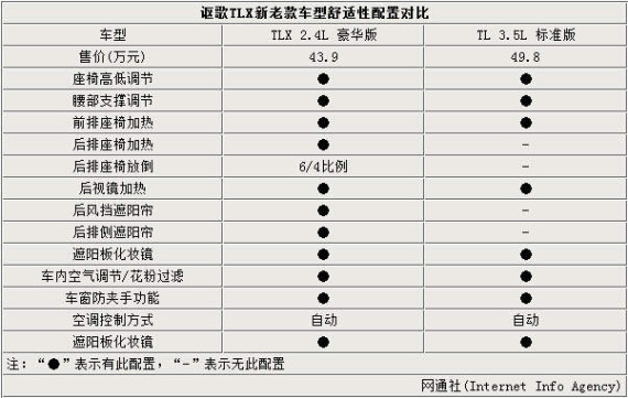 在舒适性以及多媒体配置方面,TLX 2.4L 豪华版与TL 3.5L 标准版比较起来也有一定优势,不仅配备了自动调节后风挡遮阳帘,同时后排也增加了手动侧遮阳帘,可谓“低调奢华有内涵”,足以满足日常用车需求。
