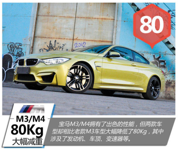 轻量化已成为未来汽车行业发展的重点,这点宝马M3/M4也不例外,为了提升更加强劲的性能,全车大量的采用了强量化材料,其整车相比老款车型减重多大80公斤,无论是发动机、变速器、车顶等均有大幅度减重,其中发动机以及变速箱减重达到了22公斤。对此,宝马M3/M4产品经理克里斯托夫·思敏熙科表示:“这样做可以强化车辆的动态表现和操控性,优化燃油效率,降低排放。”