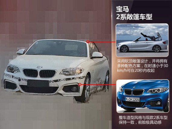 2系是宝马为适应新的市场需求而开发出来的一款新的车型体系,目前国内在售的是双门轿跑和运动旅行两款衍生车型。2系敞篷是基于2系打造的另一款车型,其在海外推出后,有望在明年引入国内市场销售,进一步丰富2系家族的产品阵容,并将有助于宝马品牌在这一细分市场,与奥迪全新A3敞篷版等车型展开竞争。