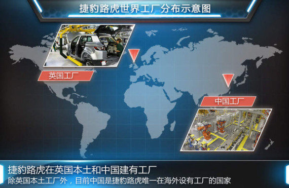 主流车企在全球各地都设有生产厂,而捷豹路虎除了在印度“塔塔的工厂”以代工方式SKD组装捷豹路虎车型外(这些工厂并不属于捷豹路虎),所有车型都集中在英国本土生产。中国常熟工厂是捷豹路虎首家海外工厂,根据规划2016年工厂实现完全产能,每年产出可达13万辆,在此基础上有进一步扩展的可能。