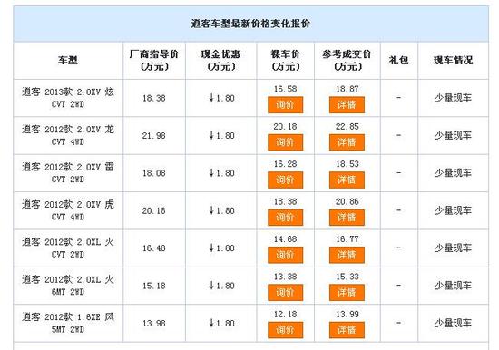 http://wx.auto.sina.com.cn 2014年11月03日 15:45新浪无锡字号:大中小近日,南华汽车销售店内逍客 (配置|询价)现车销售,颜色可选,目前购车部分车型可优惠1.8万元,感兴趣的朋友可以到店咨询购买,详情见下表: