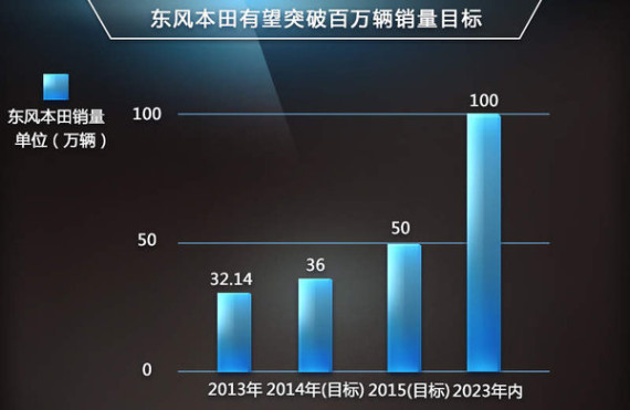 去年,东风本田拥有32.14万辆的销售业绩,同比增长了13.9%。随后官方将今年的销售目标定为35万辆,并在2015年要突破50万辆的销量高度。值得一提的是,面对如此高目标的销量,东风本田有望在明年推出包括中型SUV、B级车以及改款思铭和新能源车型在内的多款新车。