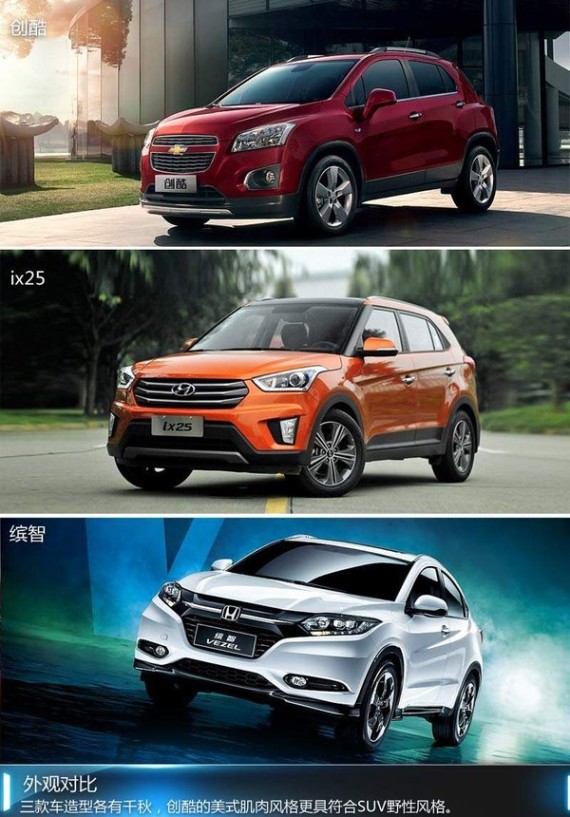 既拥有轿车的良好操控性通又具备一定的越野能力,SUV近两年在国内大行其道。据中汽协公布的数据显示,今年1-8月,SUV同比去年增长34.5%,远高于乘用车整体10.7%的增幅。纵观国内汽车市场,SUV新产品层出不穷。继紧凑SUV在市场上走俏之后,又一股小型SUV风潮正在来袭。从雪佛兰从创酷到现代ix25再到新近上市的缤智,今年小型SUV市场又添几员猛将。作为小型SUV市场新近成员,这三款车究竟谁的实力更加强悍?今天我们将从尺寸、动力、配置等实用性角度出发为大家做横向比较。