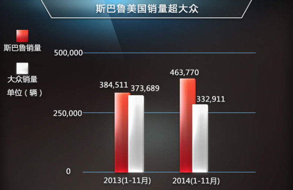 众所周知美国市场的消费者在购买座驾的心里相对比较成熟,受到他们认可的车型并不容易。例如在中国市场销量最好的大众,在美国的销量并不出众。当然也有例外,日系品牌凭借出色的产品技术及性能深受美国车主的欢喜,斯巴鲁就吸引着一大批的美国人群。近日,斯巴鲁官方透露:在森林人和2015款新傲虎两款SUV车型的助推下,今年1-11月斯巴鲁在美销量达463,770台,这个数字超过了大众在美国市场同期的销量表现。