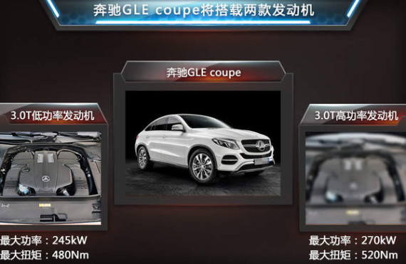 据了解,未来GLE Coupe将推出两种版本车型,除普通版外,还将推出性能产品GLE450 AMG Coupe,其也是奔驰全新子品牌AMG Sport旗下首款产品。而在动力方面,该系列车型将搭载两款经过不同调教的3.0T双涡轮增压发动机,其中普通版所搭载的低功版,最大功率245kW,最大扭矩则为480N·m。而性能车型所采用的3.0T高功版,最大功率则为270kW,最大扭矩则达到了520N·m。