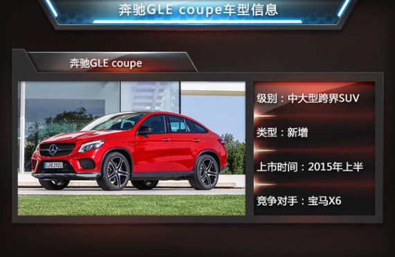 此前奔驰正式公布了旗下全新跨界SUV——GLE Coupe的官方图片,该款产品作为奔驰首款针对“跨界SUV”这一新兴市场所推出的全新产品,采用了更具动感的造型,并借鉴了S级Coupe的设计元素。近日,奔驰内部知情人士透露,全新GLE Coupe将在明年上半年正式引入国内销售,除将推出常规版本外,还将推出性能版本。