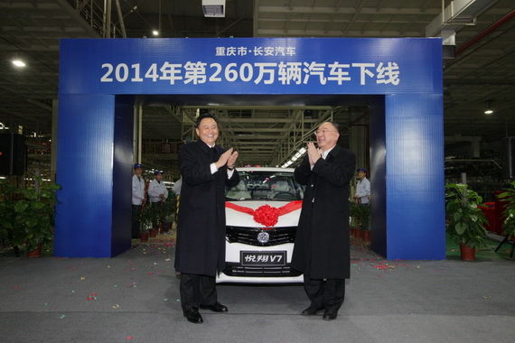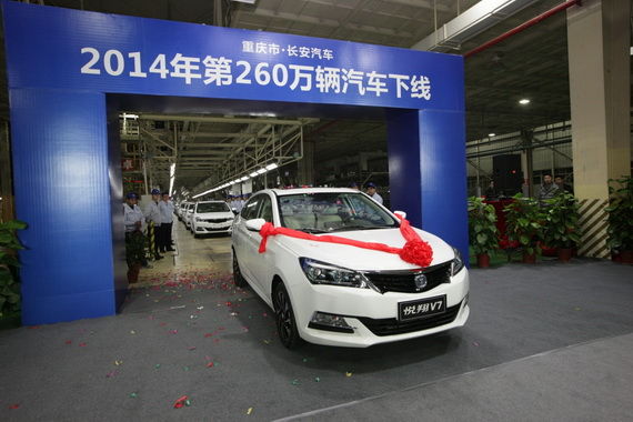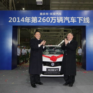 12月30日,重庆市2014年第260万辆汽车下线仪式在长安渝北工厂举行。在市委、市政府领导、长安汽车领导以及各大新闻媒体共同见证下, 重庆市2014年第260万辆汽车——长安悦翔V7正式下线,重庆制造汽车迈上年产260万辆新高峰。这必将翻开重庆汽车产业和长安汽车发展的新篇章!