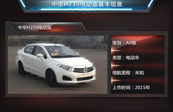 通过长时间的研发和实验,中华H230 EV即将于今年推向市场。这款电动版的H230较汽油版而言,在车身尺寸有着小幅调整,新车长宽高分别为4390mm/1703mm/1497mm,其中车身高度增加了15mm,轴距仍为2570mm。除车身尺寸的调整外,车辆在整备质量上由于加装了锂电池,净重达到1400kg,较汽油版增加了近200kg。在动力方面,中华H230 EV电动车采用永磁同步电动机,峰值功率可达65kW,可实现110km/h的最高时速,同时车辆配备有磷酸铁锂蓄电池,预计续航里程将超过150kM。