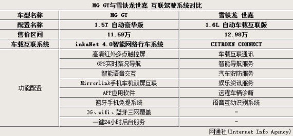 ④MG GT对比雪铁龙世嘉:互联驾驶