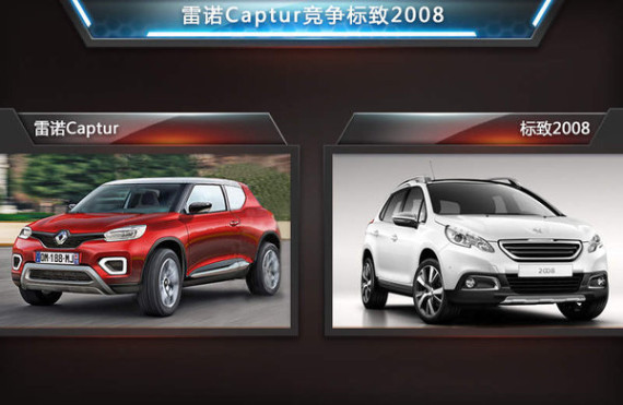 2014年是小型SUV井喷的一年,各大品牌相继推出竞品车型。与雷诺Captur较为接近的标致2008车型目前已经实现国产,上市三个月,销量已经达到11,000辆,充分证明小型SUV市场还用有巨大的潜力。雷诺Captur与标致2008在品牌、车型等方面均存在竞争关系,因此未来Captur国产后将与东风雷诺2008展开较量。