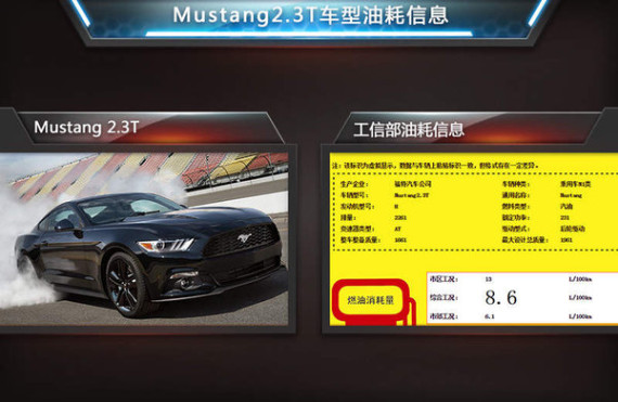 去年11月17日,福特在华正式公布旗下新一代Mustang (配置|询价)(野马)的官方预售价,其作为福特的经典跑车,Mustang首次通过官方渠道正式引入国内销售,新车将在今年1月份正式上市。近日,工信部透露,福特Mustang在国内将率先推出搭载2.3T引擎的车型,搭配6速手自一体变速箱,新车在综合工况下百公里油耗仅为8.6L。