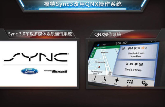 福特公司在本届CES上展示全新的Sync 3.0车载多媒体娱乐通讯系统,Sync 3 相比前一代产品有流畅的运行速度。它最大的变动是放弃了合作多年的 Microsoft Auto,取而代之的是 QNX 操作系统。