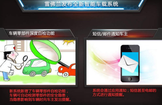 在2014年的CES上,通用汽车联合AT&T(美国电话电报公司)推出了一款支持4G LTE网络的车内娱乐系统-Appshop。 而在今年的CES 2015国际消费电子展上,通用旗下雪佛兰将正式发布全新智能车载系统。新系统最大亮点就是支持车辆零部件深度自检,该系统预计在2016年正式问世。据悉,雪佛兰正在研发的智能车载系统支持自动检测汽车零部件的安全隐患,并在这些隐患真正影响到车辆时向车主发出提醒。