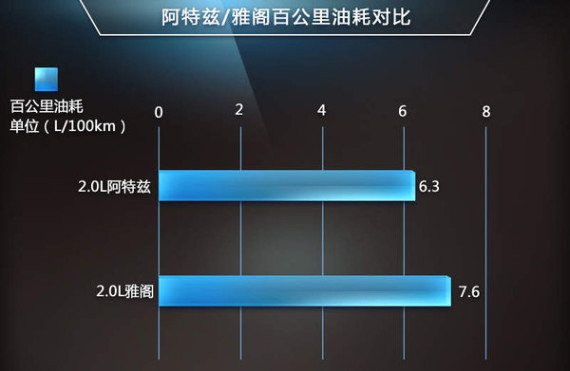 搭载创驰蓝天发动机及变速箱的马自达车型,凭借创驰蓝天技术,通过大幅加宽离合器锁止范围,让燃油经济性提升4%到7%。对于阿特兹这样一款轴距2830mm的B级车,2.0L车型的百公里综合油耗最低仅为6.3L,而同一价格区间的同级别车型百公里油耗均在7升以上,例如同为日系品牌的广汽本田雅阁百公里油耗7.6L/100km。