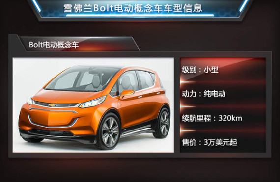雪佛兰凭借打造Volt沃蓝达和Spark电动车积攒的电气化技术实力,使Bolt电动概念车拥有超过320公里的续航里程,这一数据已超过宝马i3。玛丽•博拉女士表示:“我们在科技方面取得的巨大成果为雪佛兰客户带来了价格更亲民且更适合日常驾驶的纯电动车。Bolt电动概念车充分体现了通用汽车致力于推进电气化发展的承诺,以及在电动车技术方面的雄厚实力。” Bolt电动概念车起售价为3万美元,将在全美50个州以及全球多个市场销售,未来有望引入国内市场。
