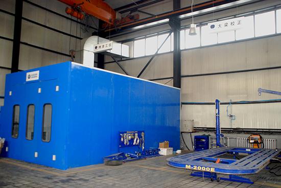 保养维修车间分为两大车间,靠外面的车间为日常的保养、维修工位,再往里的一侧车间则是汽车零配件的仓库、油料库等等,还有一个喷漆房和大梁校正工位。