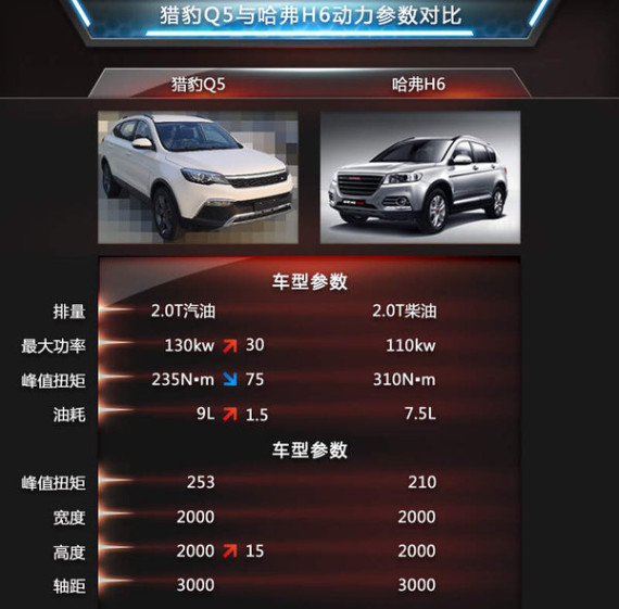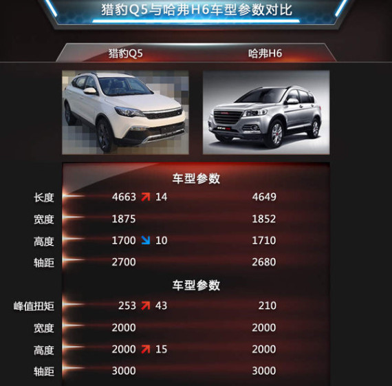 猎豹Q5作为城市SUV,接近角23°离去角25°。对付一般的崎岖路面问题不大,该车长宽高分别为4663/1875/1700mm,轴距则达到了2700mm,根据官方所公布的数据,百公里油耗为9L。相对于目前该细分市场中热销车型哈弗H6,该车在多个方面都有比较大的优势。