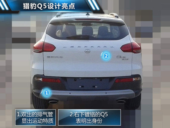 此前在车展亮相的猎豹Q5概念车曾凭借较为漂亮的外观引人关注,猎豹Q5是这几年猎豹致力开发的全新都市型紧凑SUV外观的原创度还是比较令人满意的。猎豹Q5的量产车延续了概念车的设计理念,局部细节进行了调整以适应量产车需求,蜂窝状的进气格栅动感十足,进气格栅上和保险杠下侧都采用了镀铬这种装饰手法,符合现在汽车设计潮流趋势。