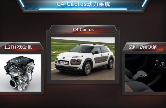 C4 Cactus的车身尺寸属于小型SUV范畴,长宽高分别为4157*1729*1480mm,轴距为2595mm,动力方面,新车怎搭载了一台1.2升三缸汽油发动机和1.6升柴油发动机,未来引入国内销售的版本预计为汽油版本,传动系统则为5速手动或6速自动变速箱。