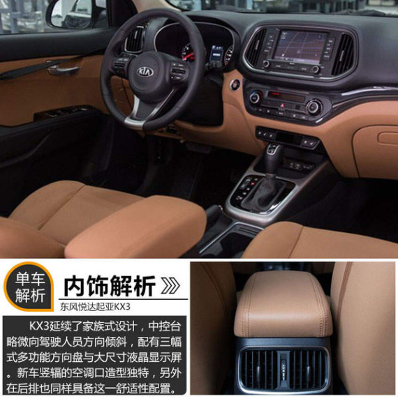 在内饰上,东风悦达起亚KX3量产版延续了家族式设计,中控台略微向驾驶人员方向倾斜,符合其人性化的设计理念。三幅式多功能的方向盘与大尺寸的液晶显示屏为消费者提供更便捷的服务。新车竖辐的空调口造型独特,另外在后排也同样具备这一舒适性配置。据悉,新车将配备有侧气囊、侧气帘、电子车身稳定系统、发动机一键启动等多项功能。