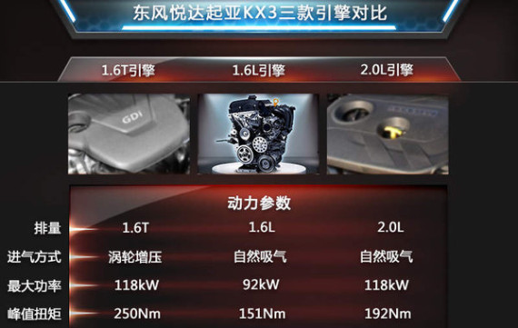 动力方面,KX3将搭载1.6L、1.6T和2.0L三款发动机。其中1.6L发动机的最大功率为92kW,峰值扭矩为151Nm;2.0L发动机的最大功率达到118kW,峰值扭矩为192Nm。传动部分,匹配的是6速手动和6速自动变速箱。值得关注的是新车搭载的1.6T涡轮增压发动机的最大功率为118kW,峰值扭矩为250Nm,匹配7速双离合变速箱。