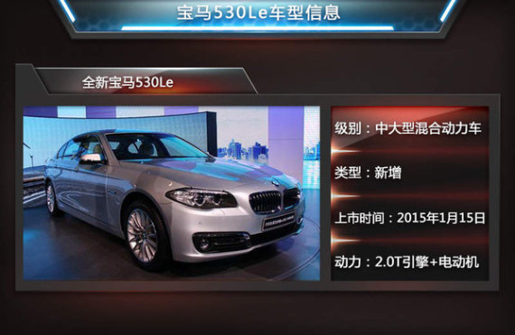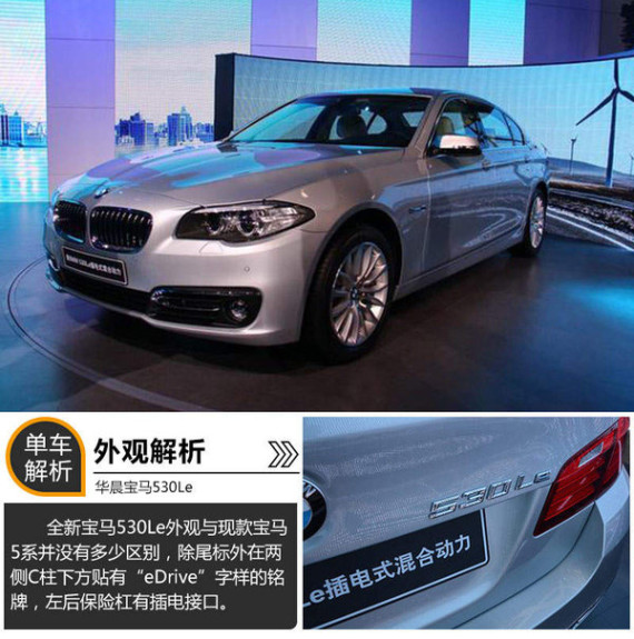 在2014年广州国际车展上华晨宝马530Le全球首发,该车是华晨宝马旗下首款插电式混合动力车型。近日,从华晨宝马官方透露:宝马530Le将于今日在上海宝马品牌体验中心正式上市。据了解,新车基于国产长轴5系打造,外观方面与传统动力车型差别不大。动力方面,其混合动力系统由一台2.0T涡轮增压汽油机与永磁电机构成,可实现外接充电式插电,百公里油耗仅为3.8L。