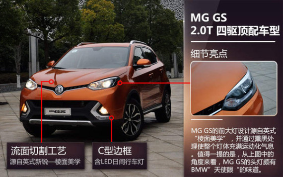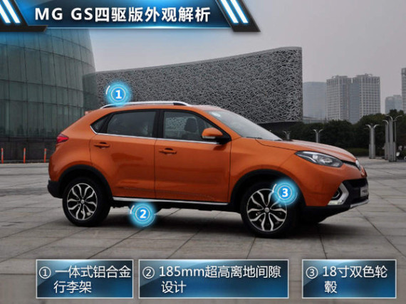 作为一款主打都市生活的SUV车型,MG GS在外观造型上兼具了轿车的灵动性与SUV良好的通过性。185毫米的离地间隙以及28°接近角、23°离去角的设计,确保MG GS能够满足绝大多数城市路况。此外,MG品牌还首次运用了名为“棱面美学”的设计主题,并使之与经典英式元素相结合,形成现代和传统间的激情碰撞。