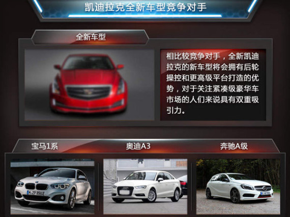 国内的豪华品牌入门紧凑级轿车市场基本被德系三强的宝马1系、奥迪A3和奔驰A级统治,凯迪拉克全新入门级车型将力图打破这一垄断局面。新车的后驱特性、较高级别的平台打造将会是其参与市场竞争的重要砝码。通用旨在通过投放新车型,进一步丰富在华产品线提升影响力,从而加速凯迪拉克的品牌复兴。