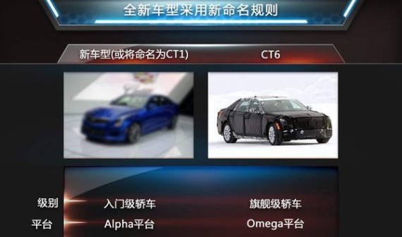 不久前,凯迪拉克宣布了旗下车型新的命名规则,其中所有的轿车型号都将采用英文字母组合“CT”为开头,字母后的数字将反映车型相应的尺寸,以及在凯迪拉克产品型谱中的定位。凯迪拉克将在改款或推出全新车型时采用以上命名规则,最新推出的旗舰级轿车被命名为“CT6”。即将推出的入门级轿车也将采用CT+数字的命名。