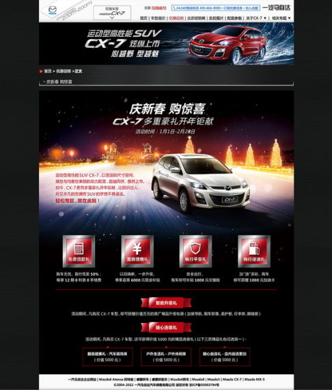 值得注意的是,虽然马自达CX-7性能及配置均为中型SUV,但是在错位竞争策略的作用下,其价格已下探到19.98万元;不但令消费者大呼受益,整个紧凑型SUV市场更是风声鹤唳。如今,马自达CX-7乘胜追击,借新春畅销季再添一把火,其首付价已不足十万,性价比之王名副其实;想在春节购车的朋友,可千万不能错过!