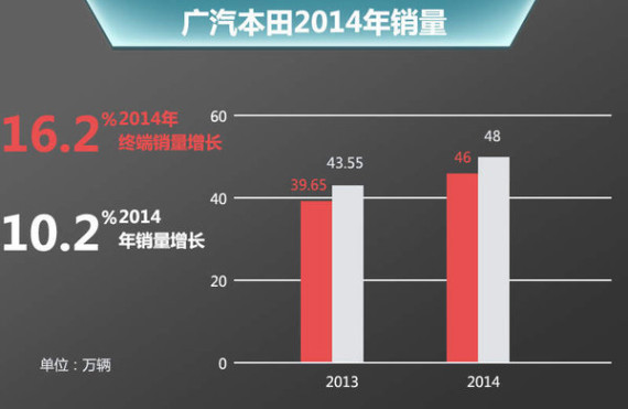 2014的中国车市增长趋于“理性”,不见了高双位数的增速。而自主品牌和部分合资品牌也遭受市场环境的恶略的困扰,纷纷交出负增长的答卷。但即便如此仍有部分厂商逆势上涨,广汽本田在2014年就以终端销售增长16.2%,批售数量增长10.2%的成绩成为行业平均水平的领跑者。