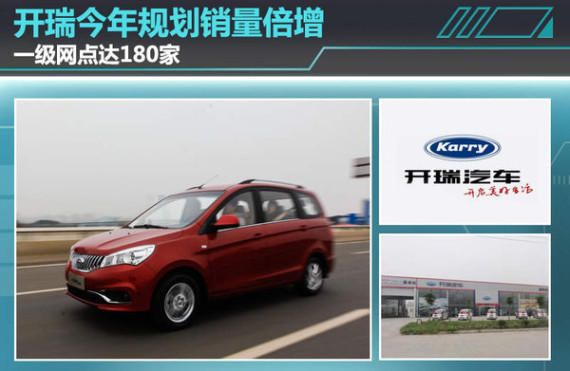 开瑞汽车在经历了一个并不算成功的2014年后,开始新一轮的市场思考并加速了新产品的投放计划。昨日,开瑞旗下首款MPV车型K50正式上市,对于这款新车,开瑞自然寄予了很高的期望,开瑞营销公司副总经理李学用先生在接受媒体采访时表示:我们希望通过K50的上市带动整体销量上的提升,根据我们的规划,2015年将保底完成8万辆、力争突破12万辆的年度销售目标。如若能达到市场预期,开瑞今年的销量将会实现倍增。此外,开瑞还准备对经销商网络进行小幅扩充,其中一级网点在今年年底有望达180家。